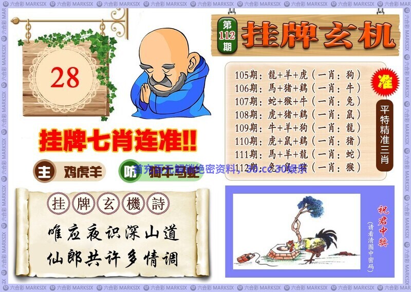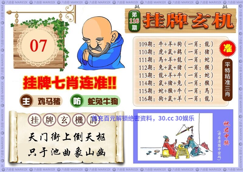 116期挂牌玄机:天门街上倒天枢,只于池曲象山幽 解:诗人以星象倒转的奇观(天枢)与山水幽深之景(池曲象山)相对比,可能表达对超然物外境界的向往,或暗含对自然规律与人文隐逸的思考 六肖:兔牛鸡羊鼠马 12码:15.27.29.41.21.33.23.35.18.30.12.24 平特一肖:马马马 |